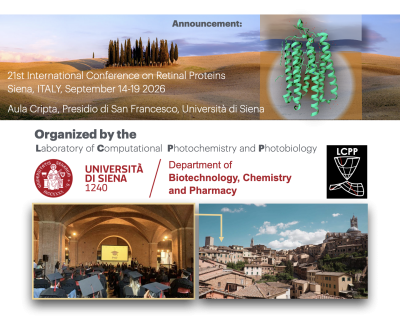 It will be the first time that the ICRP is held in Italy since its first edition in 1984. While, I and the Co-Chair, Prof. Kwang-Hwan Jung (Songan University, Republic of Korea), are committed to create a unique scientific and cultural event, our success will also depend on the available financial resources.ICRP2026 focuses on the Photophysics, Photochemistry and Photobiology of the, arguably, more extended and diffuse biological photoreceptor family of our planet (more than 500,000 known members found in organisms belonging to all kingdoms of life) including visual and non-visual pigments in humans, ion-pumps, ion-channels and enzymes in algae, bacteria and Archaea. Recently, the conference has been extended to retinal protein enabled technologies that are advancing structural biology and imaging, synthetic chemistry and biology, and neuroscience with application in medical and environmental sciences.